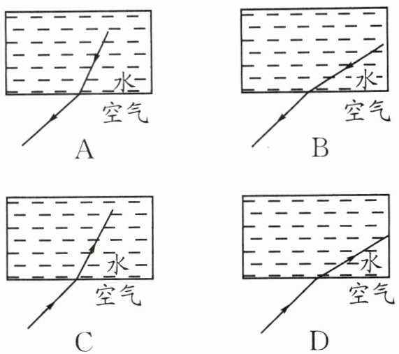 10. (2023·常州)海洋公园内,北极熊站立在方形透明水族箱内,头在水面上,身体在水面下。水族箱外的游客居然看到了北极熊“身首异处”的奇异场景,如图6所示。游客看到北极熊身体的光路图是(