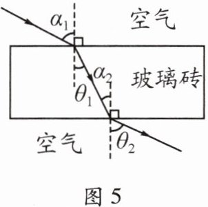 9. 一束光从空气中斜射向玻璃砖并穿过,其光路如图5所示,则下列关于四个角大小关系的判断正确的是(