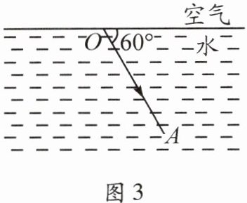 7. 如图3所示,OA是光从水中斜射入空气中时的一条反射光线,OA与水面的夹角为60°。下列关于入射角∠α、折射角∠γ的结论正确的是(