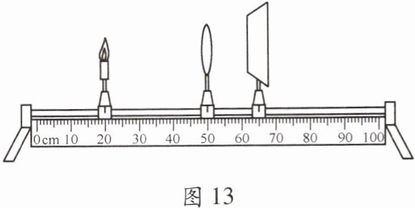 1. (双选)如图13所示,在“探究凸透镜成像规律”实验中,当蜡烛、凸透镜、光屏在光具座上的位置一定时,烛焰在光屏上成清晰、缩小的像。要使烛焰在光屏上成清晰、放大的像,调节的方法是(
