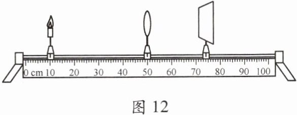 (3)小潘将蜡烛放在光具座10 cm刻度线处,移动光屏到图所示的位置,光屏上恰好呈现一清晰的像,该像的性质是倒立、