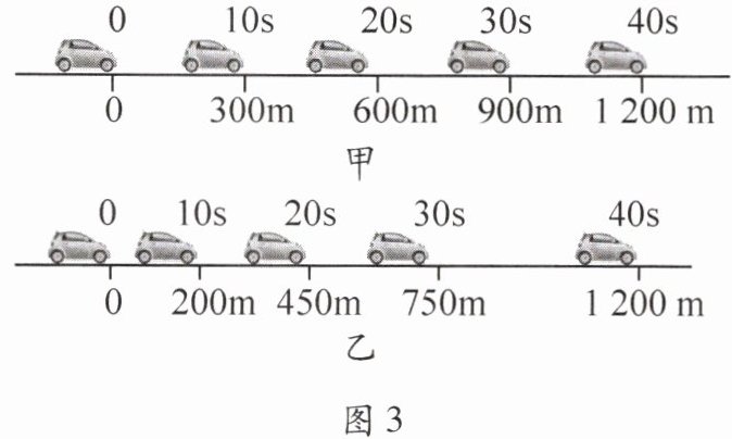 3. 图2所示是甲、乙、丙三辆小车同时同地同向行驶的运动图像。由图像可知:若以甲小车为参照物,丙小车相对于甲小车的运动状态是