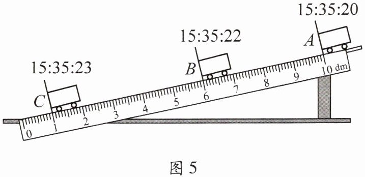 6. (2023·眉山)如图5所示,小明在“测平均速度”实验中,让小车从斜面上的A点处由静止开始下滑,小车经过B点到达C点,图中已标出小车经过A、B、C三点对应的时刻。下列说法正确的是(