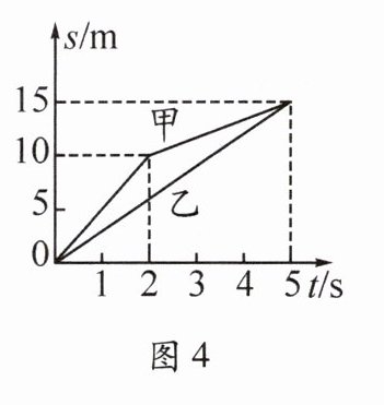 4. 图4所示是甲、乙两物体运动的路程—时间图像。由图像可知,乙物体前2 s通过的路程是