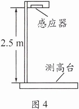 2.(2023·安徽)图4所示是一种身高测量仪,其顶部的感应器竖直向下发射声波信号,经下方物体反射后返回,被感应器接收。某同学站上测高台,感应器记录信号从发射到接收所经历的时间为$5× 10^{-3}s$。已知感应器距测高台的高度为2.5 m,空气中的声速取340 m/s,则该同学的身高为 (