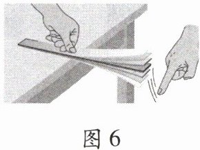 12.如图6所示,在“拨尺发声”实验中,小明多次改变尺子伸出桌面的长度,用相同的力拨动尺端,尺子发出不同的声音。不同的声音主要指其(