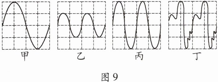 3. 图9所示是小明用示波器软件探究声音得到的波形图,则下列分析正确的是(
