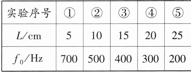 2. 风铃有七根长短不同的小棍,小新同学在敲打小棍时,发现它们发出的声音不同。经研究,得出结论:同一种铁棍,长度L不同,敲击时振动的频率f不同,其关系如表所示。