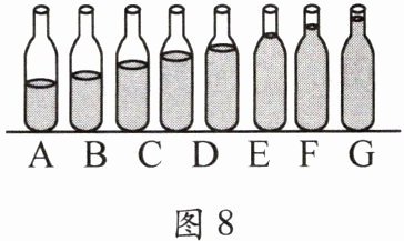 1.(2023·韩城)小强找来8个相同的啤酒瓶并装入不同高度的水,如图8所示。
