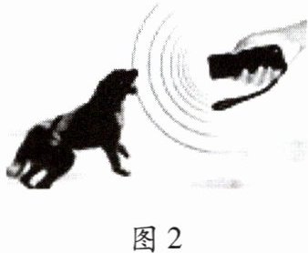 2. 现代社会里,养狗成为一种“时尚”,但遛狗伤人事故时有发生,超声驱狗器(如图2)应运而生。实验结果显示:对着狗按下超声驱狗器的开关,狗好像听到巨大的噪声而躲开,而旁边的人什么也没听见。这是因为超声驱狗器(