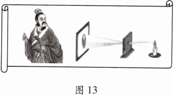 3.早在战国时期,我国古代著名教育家、思想家墨子就研究了小孔成像的现象。如图13所示,他用蜡烛作为光源,在木板上钻一个小孔,发现光线透过小孔在墙壁上形成一个像。下列说法正确的是 (