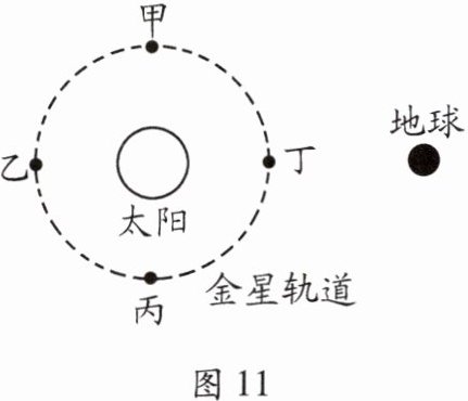 “金星凌日”是在地球上看到金星从太阳面上移过的现象,它的产生和日食的道理相同。如图11所示,发生“金星凌日”现象时,金星所在的位置是 (