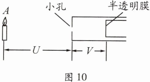 17.如图10所示,小明制成了一个针孔照相机,其实就是小孔成像的实验装置。小明将点燃的蜡烛置于小孔前的适当位置,观察并探究小孔成像的特点。