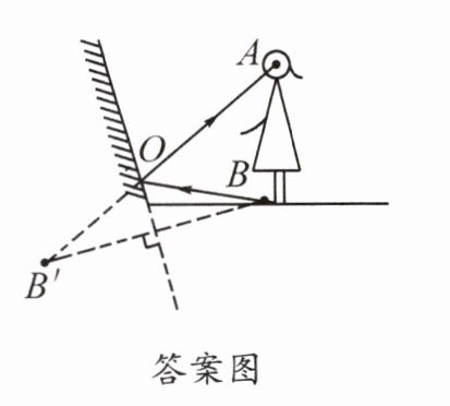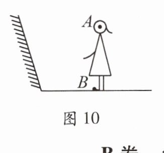 13.小美去鞋店买鞋,图10所示是她站在镜前试鞋时的情景。请画出小美的眼睛A点看到鞋面B点在平面镜中所成像的完整光路图。