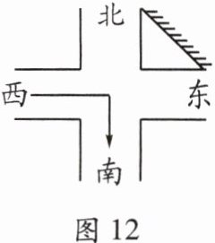 3.如图12所示,十字路口东北角楼房上镶着面对正西南方向的平面大玻璃,一辆小车向东行驶到十字路口并向南转弯,则小车在平面镜中的行驶方向是 (
