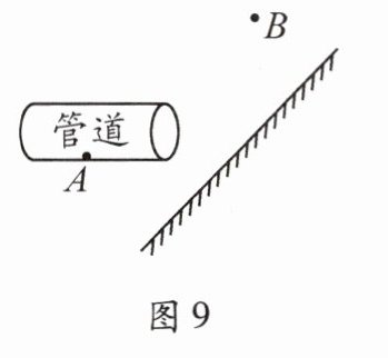 12.(2023·连云港)如图9所示,管道内的A处有一个正在发光的小灯泡,小潘的眼睛在B处看到了平面镜中小灯泡的像,请画出小潘看到小灯泡的像的光路图。