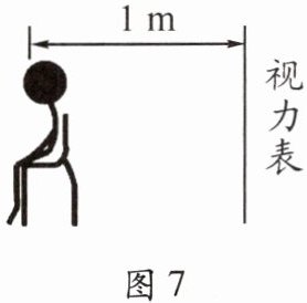 10.(2024·邵东)视力检查中,要求被测者的眼睛与视力表的距离是5 m。为节省空间,视力表常挂在被测者的后方,通过对面墙上的平面镜成像在被测者前方,如图7所示,此时被测者眼睛与平面镜的距离应为 (