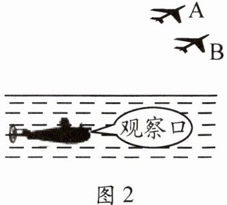 3.如图2所示的A、B两架飞机,一架是实际飞机,一架是从潜水艇上观察到的该飞机的像,则