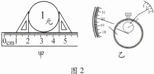 3. (2023·湖北)如图2甲所示,硬币的直径是