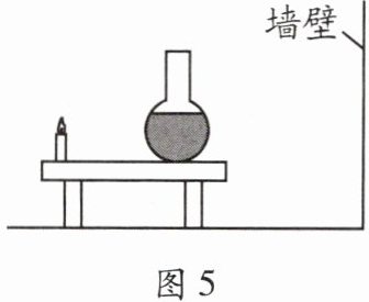 12. 南南在一个停电的夜晚,发现这样一个现象:将装有适量水的透明花瓶和点燃的蜡烛放在水平桌面上,当蜡烛和花瓶的位置如图5所示时,墙壁上出现了烛焰清晰的像。下列说法正确的是 (