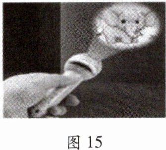3. 图15所示是一款儿童玩具——投影手电,它的前端有一个凸透镜,打开手电后,可以将底片上的卡通图案清晰地投射到墙上。下列说法正确的是 (