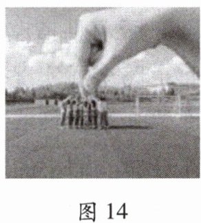 2. 图14所示是一张初三毕业创意照片,是利用视觉错位技术一次拍摄而成的,不需要经过后期再处理。在拍摄此照片的过程中,下列说法正确的是 (