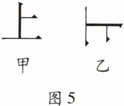 4. 在载玻片上写一个“上”字,如图5甲所示,如何让显微镜中看到的像变成图5乙所示的样子?(