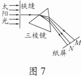 6. 图所示是光的色散现象的示意图,彩色光带出现在纸屏上的M、N之间,其中M处出现的光是 (