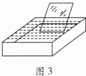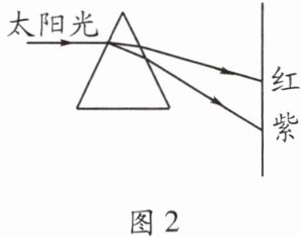 2. 如图所示,在水槽中斜插入一块平面镜,让太阳光斜射到平面镜上,适当调整平面镜的位置和角度,可以在墙壁上看到红、橙、黄、绿、蓝、靛、紫等色光组成的彩色光带,这是光的