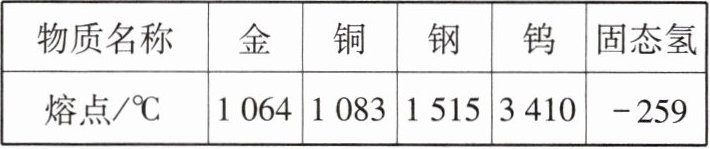 15. 下表所列为几种固体物质在一个标准大气压下的熔点。在一个标准大气压下,下列说法错误的是(
