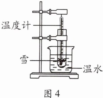 有关。小丹还想知道雪是晶体还是非晶体,于是设计了图4所示的装置进行探究。(1)为了完成实验,还需要的测量工具是