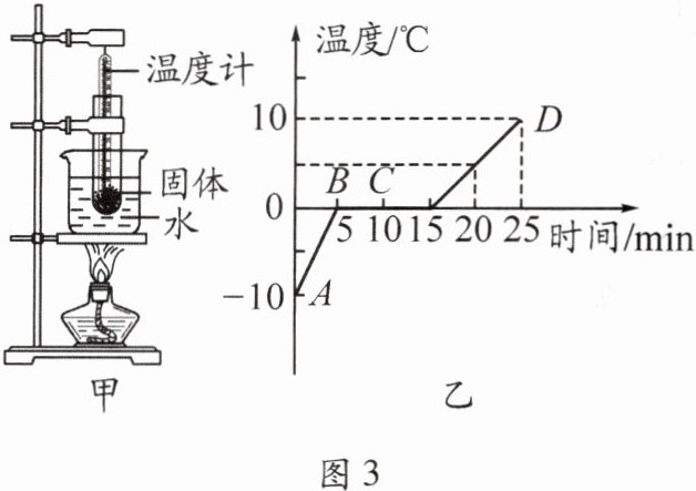 11. 图3甲所示是小聪做“探究某固体的熔化过程”实验的装置,图3乙所示是他绘制的温度随时间变化的图像。下列说法正确的是(