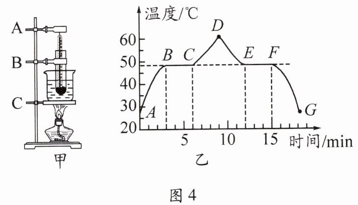 14. 图4甲所示是探究物质熔化和凝固特点的实验装置,图4乙所示是根据实验数据绘制的温度随时间变化的图像。