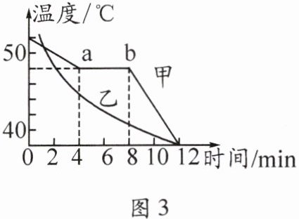 12. 小明用甲、乙两种物质做凝固实验,得到的温度-时间图像如图3所示。下列分析错误的是(