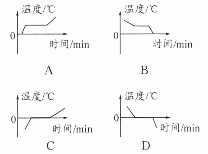 10. 炎热的夏天,小红把一些自来水倒在空杯中,然后把杯子放在电冰箱的冷冻室中。经过一段时间,杯中的自来水全部变成了冰。下列图像能正确反映这一物态变化过程的是(