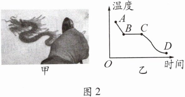 11. 图2甲所示是“成都熊猫国际灯会2024”中民间艺人制作的“糖画”。制作糖画时,艺人舀起高温的液态糖浆,在水平桌面上用糖浆绘制出各种图案,最后等糖浆慢慢变硬。小明使用红外温度计测量了糖浆的温度随时间的变化图像,如图2乙所示。关于“糖画”的制作过程,下列说法正确的是(