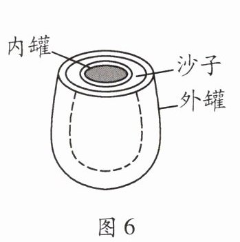 夏季,游牧民发明了一种便于携带的简易陶制——沙漠冰箱。如图6所示,沙漠水箱由内罐和外罐组成,两罐之间填满沙子,使用时将食物放在内罐里,再给内罐口盖上湿棉布。沙漠冰箱利用了