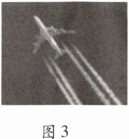 9.晴朗无风的早晨,当飞机从上空飞过,在蔚蓝的天空中会留下一条长长的“尾巴”,这种现象俗称“飞机拉烟”(如图3)。产生这一现象的原因之一是,飞机在飞行过程中排出的暖湿气体遇冷。在这一过程中,暖湿气体发生的物态变化是(