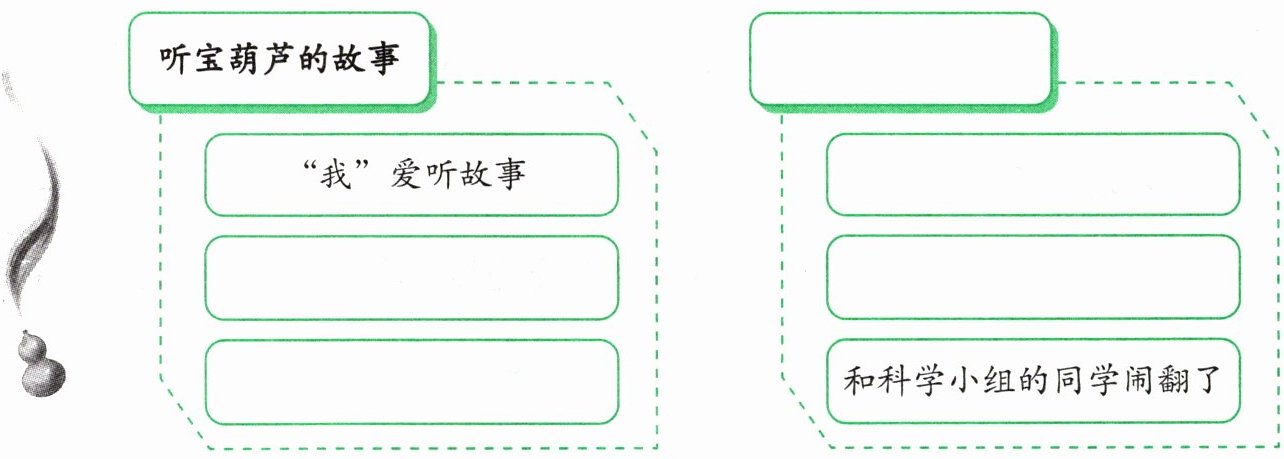 5.(示例)左:缠着奶奶讲故事 奶奶讲的宝葫芦的故事