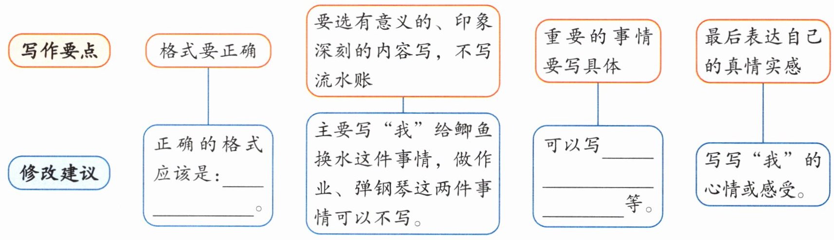 下面是朵朵写的日记,请你帮她完成日记的修改。