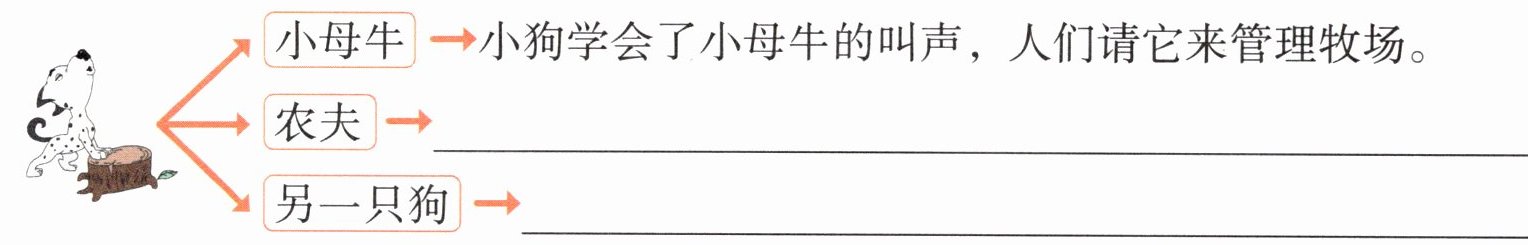 小母牛→小狗学会了小母牛的叫声,人们请它来管理牧场。