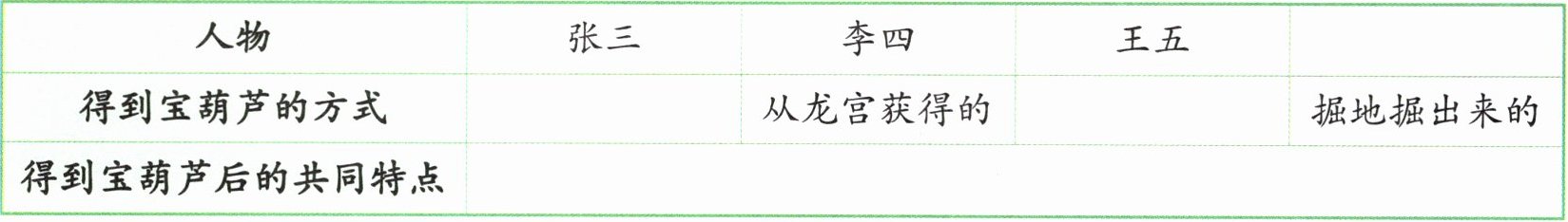 六、思维题 根据奶奶给“我”讲的故事,将下面的表格填写完整。(目标:403)