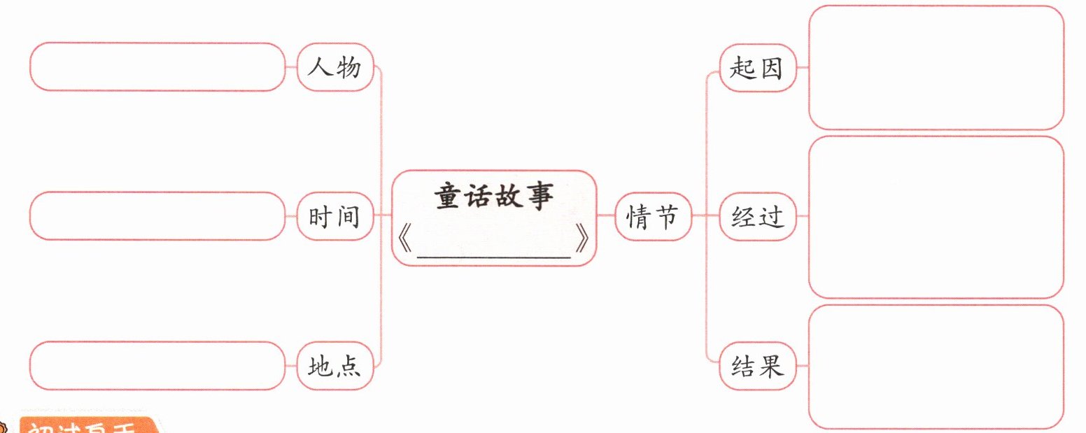 请你借助下面的思维导图,构思属于自己的童话故事。