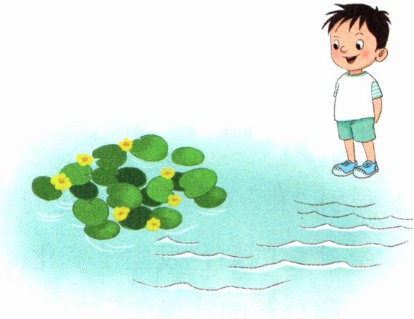 第二天,我早早地来到了湖边。有位老爷爷正在钓鱼,我便向他请教:“请问老爷爷,那叫什么花?”他立刻告诉我:“它叫水浮莲。”