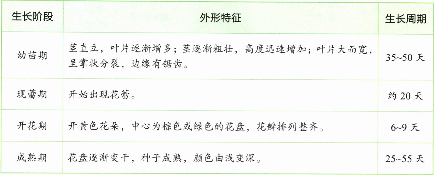 (2)向日葵从播种到瓜子成熟,大约需要一年。(