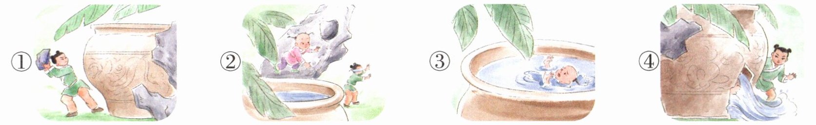 (méi mò)水中。众皆弃去,光持石击瓮破之,水迸,儿得