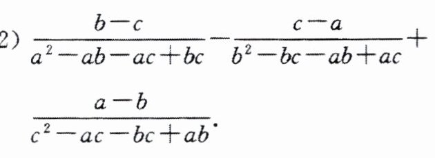 (1)$\frac{16}{x^{16}-1}$(2)原式$=\frac{b-c}{(a-b)(a-c)}-\frac{c-a}{(b-c)(b-a)}+\frac{a-b}{(c-a)(c-b)}=\frac{1}{a-b}-\frac{1}{a-c}-\frac{1}{b-c}+\frac{1}{b-a}-\frac{1}{a-c}+\frac{1}{b-c}=-\frac{2}{a-c}$.