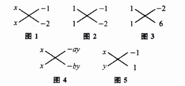 说明:在分解与本例类似的二次三项式时,可以直接将图1中的两个$x$用1来表示(如图2所示).