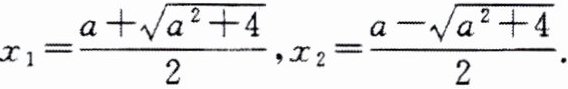 根据求根公式$x = \frac{-B\pm\sqrt{\Delta}}{2A}$,可得$x_1 = \frac{a + \sqrt{a^2 + 4}}{2}$,$x_2 = \frac{a - \sqrt{a^2 + 4}}{2}$。