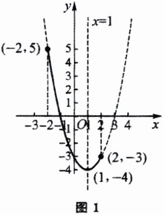 【解答】作出函数的图像,如图1所示,当$x= 1$时,$y_{最小}= -4$;当$x= -2$时,$y_{最大}= 5$.